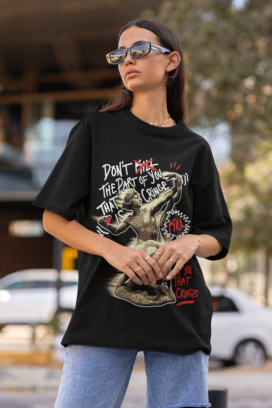 "Don't kill part of you that is Cringe" - Black Oversized T-shirt