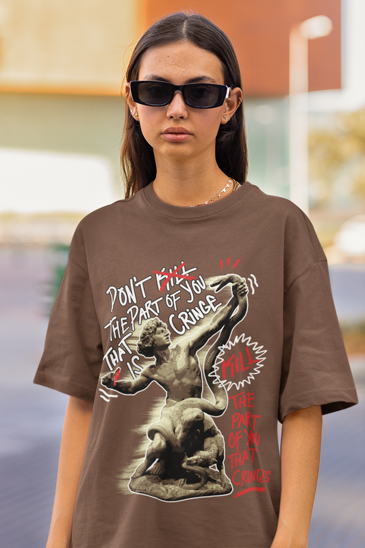 "Don't kill the part of you that is Cringe" - Brown Oversized T-shirt